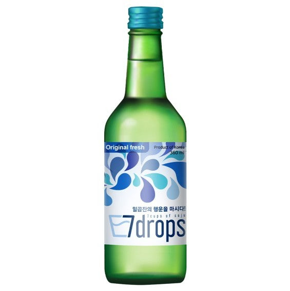 Soju Original Fresh 16% 7DROPS 360ml - L'alcool coréen authentique ! Saveur pure et équilibrée, parfait pour découvrir la culture coréenne. Livraison rapide.